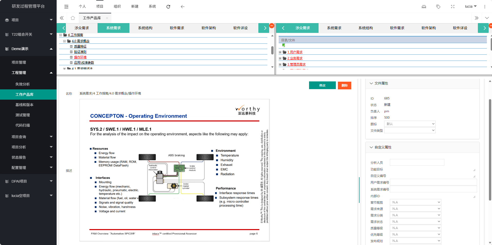 亚远景自主研发的APMS研发管理平台,将ASPICE复杂的模型要素转化为直观的图形界面,帮助学员建立清晰的知识框架。传统ASPICE培训中,学员往往难以理解过程参考模型(PRM)与过程评估模型(PAM)之间的关系,而通过可视化工具,这些抽象概念变得具体可见。