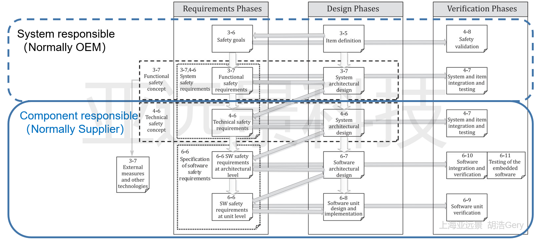 不同之处在于,当前ASPICE比较适用于各类包含软件的汽车零部件的产品研发,适用于所有的功能;ISO26262的服务对象则包含整车与零部件,更多情况是从整车角度考虑各个零部件的功能安全风险的大小值不值得投入额外的资源进行功能安全的开发,并提供相应的功能安全开发的方法论与要求以供零部件开发者进行参考开发。
